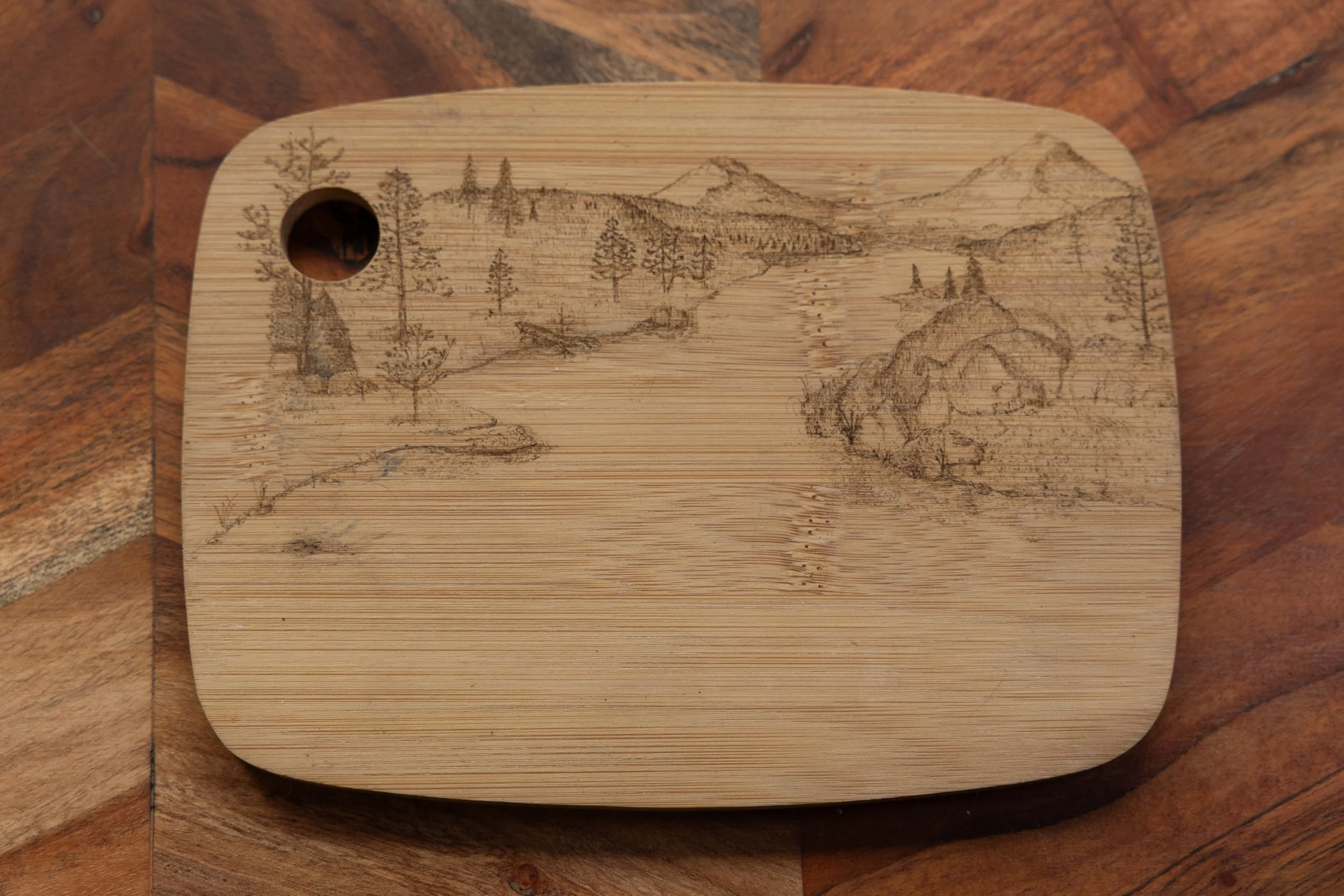 Shop the collection Hand Crafted Laserburn Art Each piece in this collection is one-of-a-kind, hand-drawn with a high power precision laser pointer and lots of patience. Witness extraordinary detail, impossible with traditional tools, born from hours, sometimes days, of meticulous creation. Custom Burn 7"x5" $150.00 Tree - Drake Park $300.00 Wine Holder - Pilot Butte $400.00 Sold out Cutting Board - Mirror Pond $400.00 Sold out Bird - Chico, CA $200.00 Clipboard - Kings Canyon $300.00